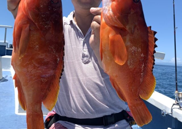 釣果情報 8月11日釣果 午前シマアジ船 カンパチ4.3㎏・イサキ・マダイ・カワハギ シマアジの当たりは多数ありましたが バラシと横取りで苦戦しました!泣 午前テンヤ・タイラバ船 魚種: アカハタ 24~42cm 2~10尾 その他: イシダイ・コロダイ・... 2023.08.12 釣果情報