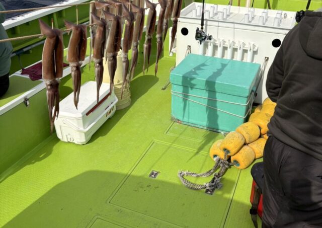 釣果情報 2月3日釣果 ヤリイカ・スルメ船 魚種: スルメイカ 26~40cm 3~18杯 中盤までヤリイカ狙いで白浜沖で頑張りましたが 大苦戦でその後洲崎沖に移動して、スルメ狙いで ポツポツと乗りました タイムロスがありましたが、なんとかお土産になりました 今... 2025.02.03 釣果情報