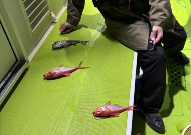 釣果情報 2月15日半夜船釣果 半夜キンメ・クロムツ船 魚種: キンメ 25~35cm 8~38尾 その他: クロムツ キンメの魚影濃く、終始ポツポツと当たりました 予報より風が吹いてきて少し早上がりとなりましたが お土産になりました 22日の半夜キンメ・クロムツ船・空... 2025.02.16 釣果情報