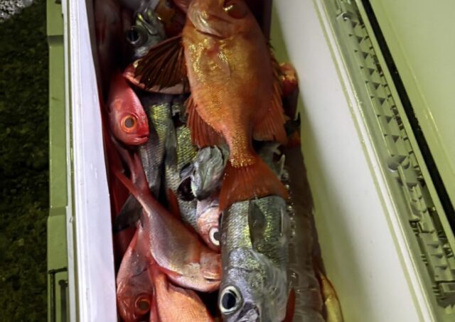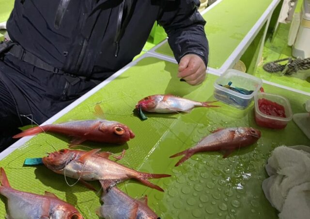 釣果情報 1月11日半夜船釣果 半夜キンメ・クロムツ船 魚種: キンメ 25~33cm 12~40尾 クロムツ 26~40cm 2~12尾 終始、潮も緩くキンメ・クロムツの活性も高くて 最後までバリバリと当たりましたね ジギングの方も好調でした 今後も魚影濃く期... 2025.01.12 釣果情報