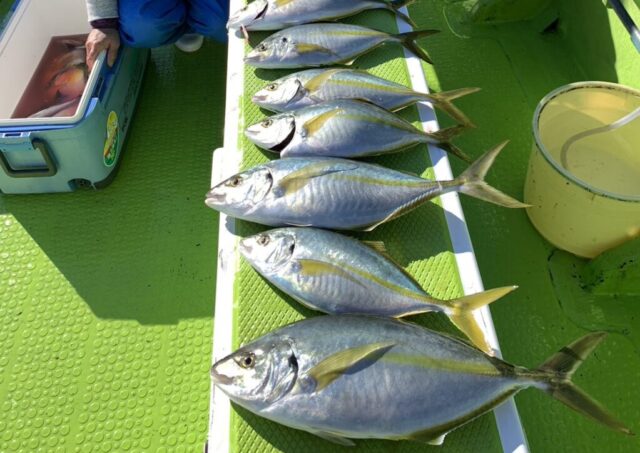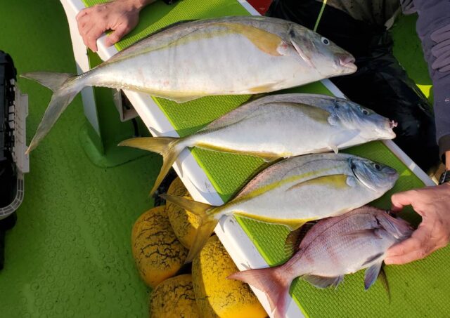 午前シマアジ船 魚種: シマアジ 小型のみ その他: ヒラメ・マダイ・カワハギ・イサキ等 今日は連日の釣果もあり、期待して出船しましたが、シマアジの活性下がってしまい激シブでした。泣 小型のシマアジは顔見ましたが、 Kオーバーは当たりが...