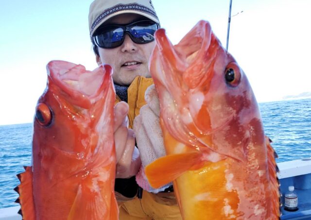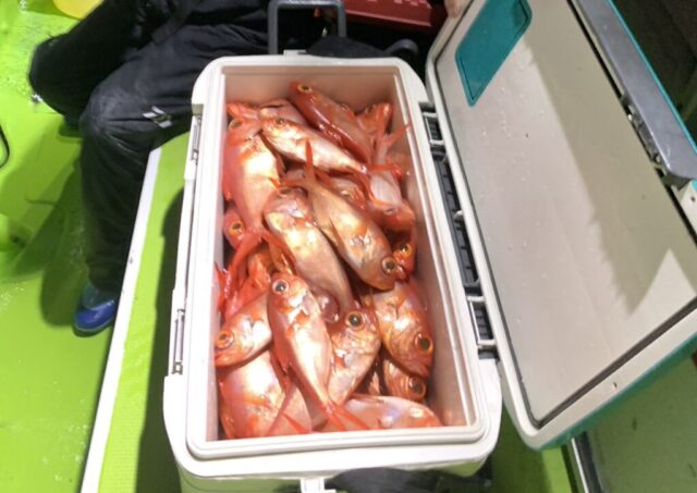 半夜キンメ・クロムツ船 魚種: キンメ 25~35cm 35~40尾 その他:クロムツ 終始キンメの魚影濃く、活性も高くバリバリと皆さん喰いました 皆さんクーラーズッシリでしたよ! ジギングの方は数を効くのを忘れてしまいましたが、当たり...